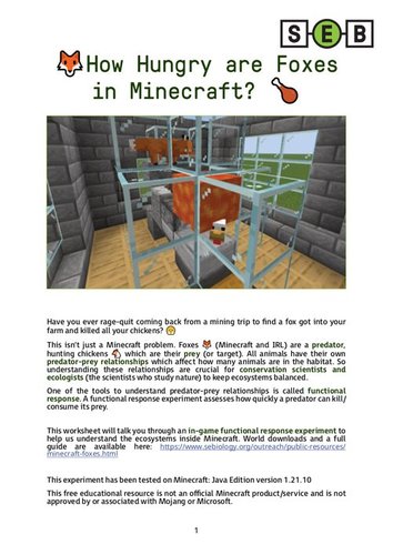 This resource will talk you through an in-game experiment to help us understand the ecosystems inside Minecraft. We tested this in Minecraft: Java Edition version 1.21.10.